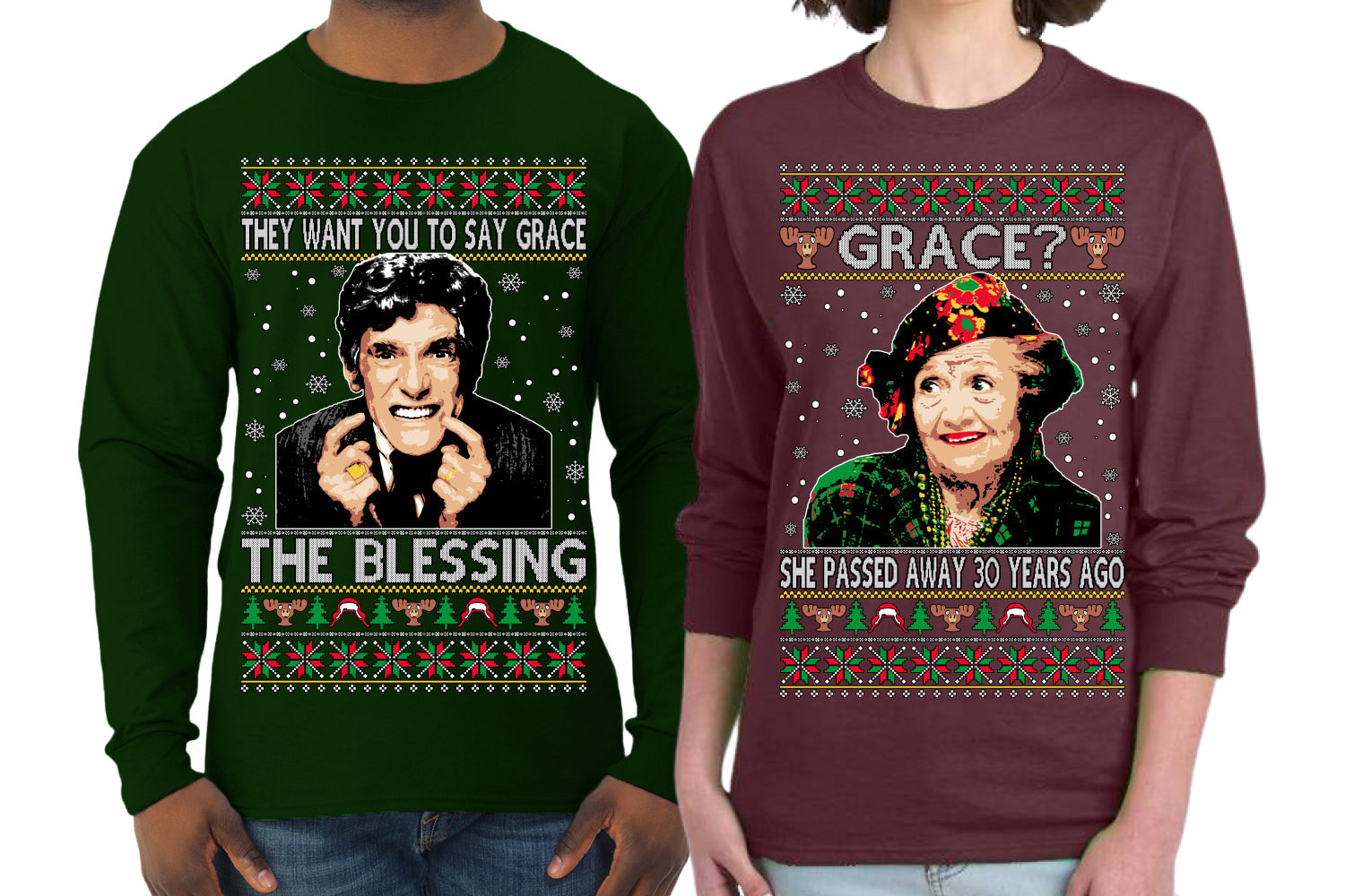They Want You to Say Grace The Blessing, Grace She Passed Away 30 Years Ago Couples Shirt Girlfriend Boyfriend Gift His and Hers Matching Ugly Christmas Couple Long Sleeve Shirt