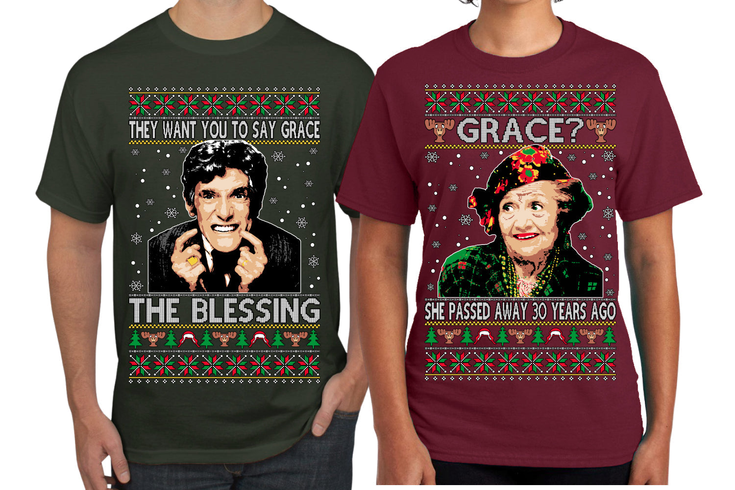 They Want You to Say Grace The Blessing, Grace She Passed Away 30 Years Ago Couples Shirt Girlfriend Boyfriend Gift His and Hers Matching Ugly Christmas Couple T-Shirt