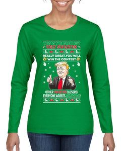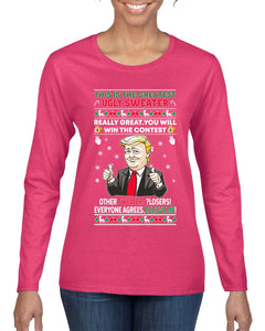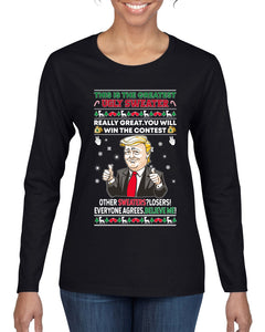 Trump This is the Greatest Ugly Christmas Sweater Womens Graphic Long Sleeve T-Shirt