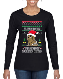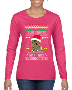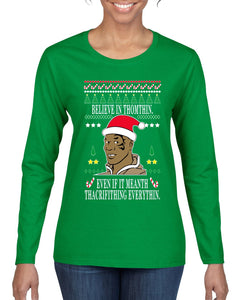 Lisp Believe In Thomthin Thacrifithing Everythin Ugly Christmas Sweater Womens Graphic Long Sleeve T-Shirt