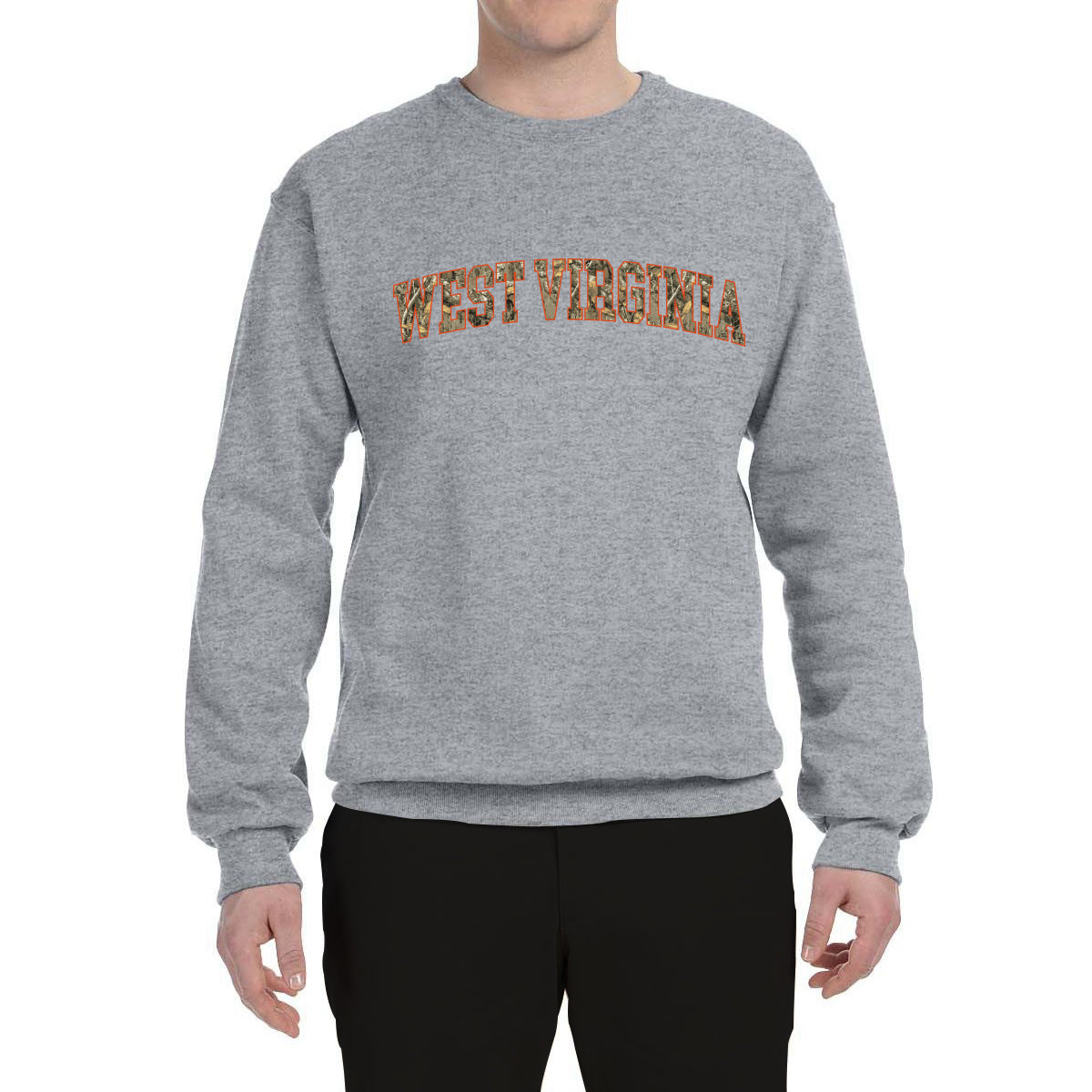West Virginia Camo Fill Orange Outline Sweater, Unisex Crewneck Sweatshirts