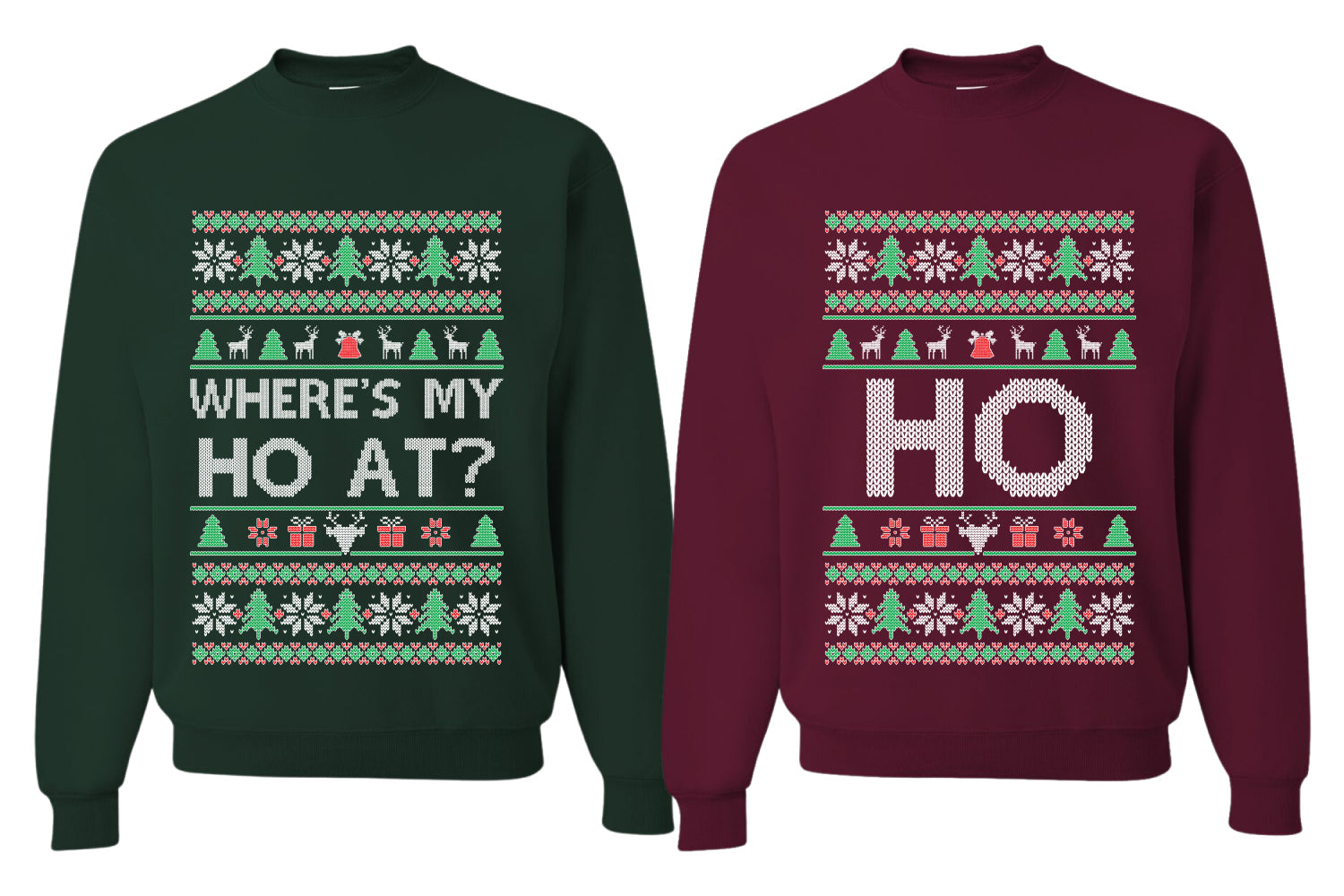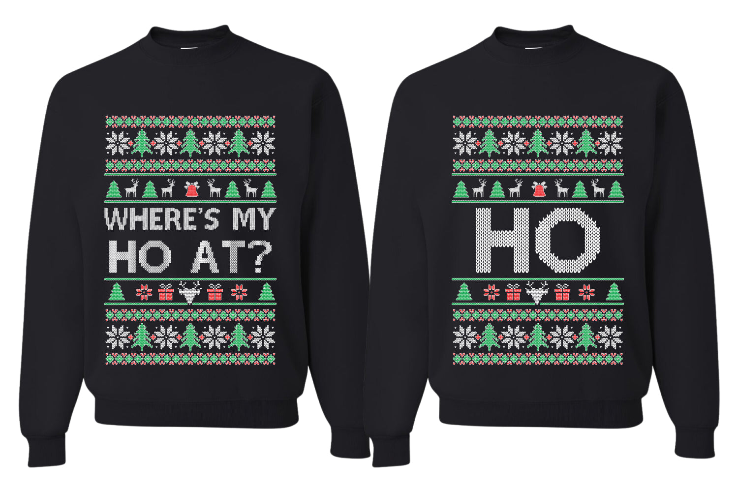 Where's My Ho At? Ho Sweater Girlfriend Boyfriend Gift His and Hers Matching Ugly Christmas Couple Crewneck Sweatshirt