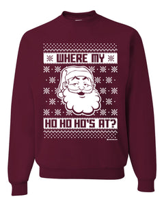 Where's My Ho Ho Hos | Santa Design Merry Ugly Christmas Sweater Unisex Crewneck Graphic Sweatshirt