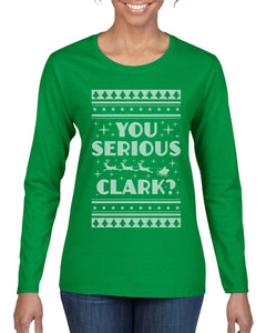 You Serious Clark Christmas Vacation Movie Ugly Christmas Sweater Womens Graphic Long Sleeve T-Shirt
