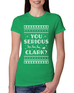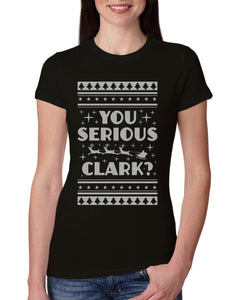 You Serious Clark Christmas Vacation Movie Ugly Christmas Sweater Womens Slim Fit Junior Tee