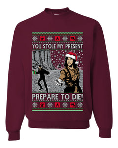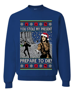 You Stole My Present Prepare To Die Cult Classic, Unisex Ugly Christmas Sweater, Crewneck Sweatshirts